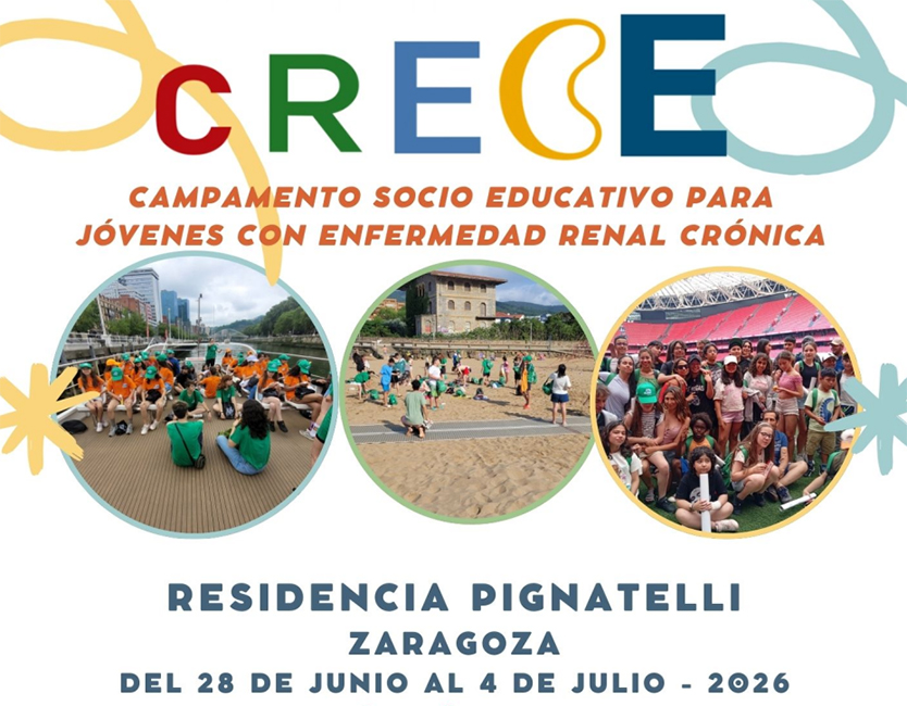 El campamento CRECE celebrará este año una nueva edición en colaboración con ALCER Ebro. La actividad tendrá lugar en la Residencia Pignatelli de Zaragoza, un espacio céntrico y con fácil acceso a diferentes servicios. El programa se desarrollará del 28 de junio al 4 de julio. El campamento CRECE es una iniciativa socio-sanitaria dirigida a niños y adolescentes de entre 8 y 17 años que conviven con enfermedad renal crónica, incluyendo casos de enfermedad renal crónica avanzada (ERCA), diálisis y trasplante renal. Esta experiencia busca ofrecer un entorno seguro en el que los participantes puedan compartir vivencias, aprender y disfrutar de actividades adaptadas a sus necesidades.