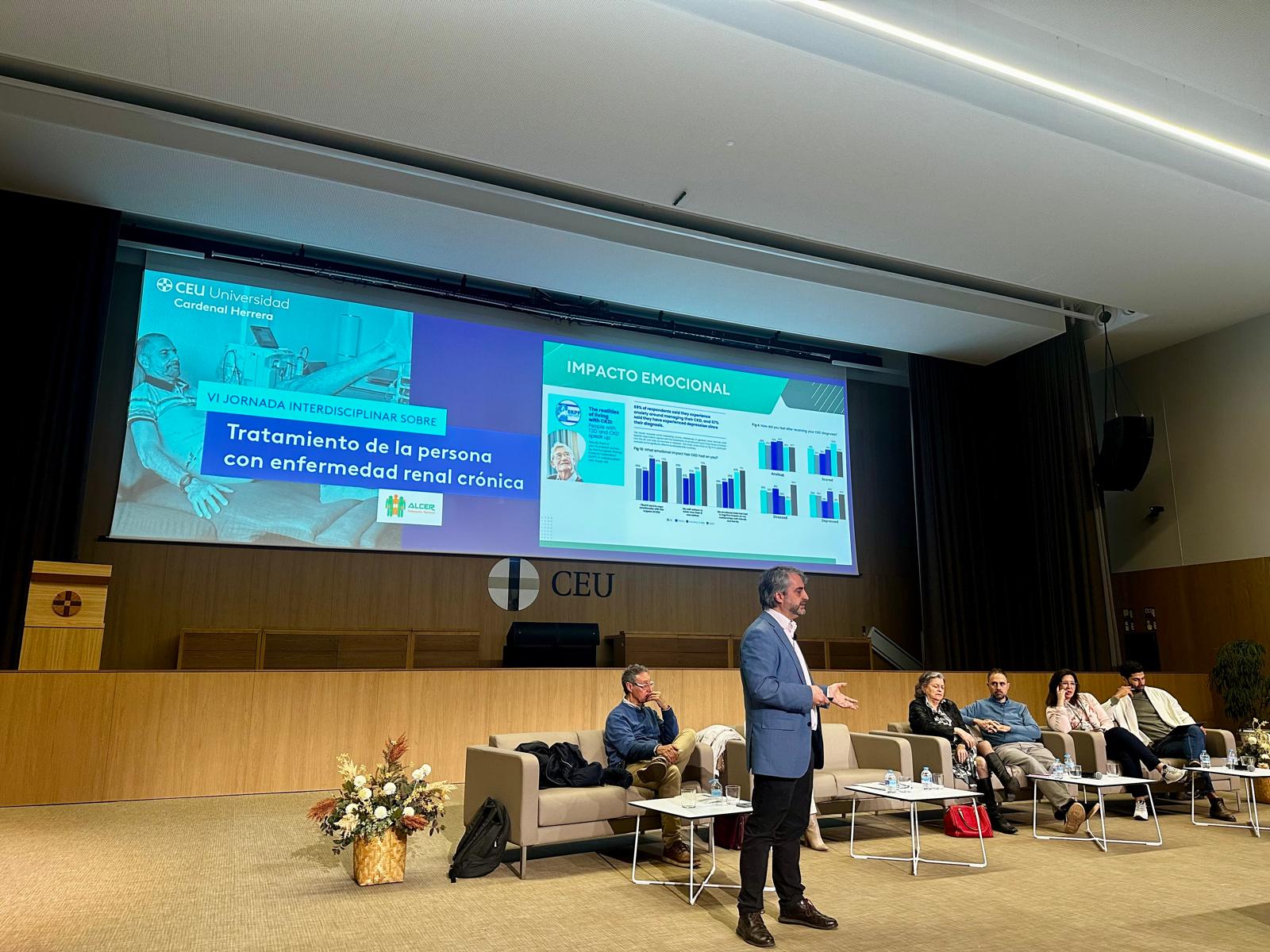 Nefrólogas, enfermeras, fisioterapeutas, nutricionistas y psicólogos de distintos hospitales y centros sanitarios y de investigación, junto a organizaciones de pacientes y familiares, participaron en la VI Jornada sobre Tratamiento de la Persona con Enfermedad Renal Crónica, celebrada en la Facultad de Ciencias de la Salud de la Universidad CEU Cardenal Herrera (CEU UCH). El encuentro permitió acercar la realidad de los pacientes en tratamiento de hemodiálisis a más de 200 futuros profesionales sanitarios. La universidad celebró por sexto año consecutivo esta jornada con motivo del Día Mundial del Riñón, con la colaboración de la Federación Nacional de Asociaciones para la Lucha Contra las Enfermedades del Riñón (ALCER), cuyo director general, Juan Carlos Julián, participó en la actividad.